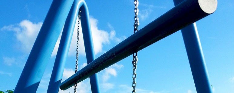 Painted steel, stainless steel chain, 550 x 540 x 270 centimetres