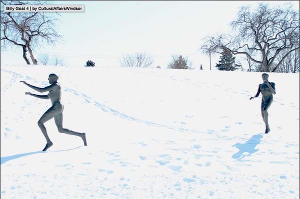 In Elisabeth Frink's sculpture, the viewer is presented with art in its most essential form. Stripped of any ornament or stylistic conceit, the rough-textured figures of Flying Men are held in straightforward action, displaying the raw plainness of a purely fluid motion. As some critics have noted, Frink's art is without "theatrical fat:" there is no "falsity of feeling." These figures move in simple pleasure. They illustrate the full realization that they are physically and spiritually free.